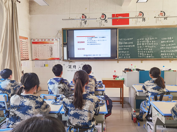 今天学校还给同学们安排了应急救护知识讲座和技能培训。大家观看了视频,红十字会专家对心肺复苏、创伤包扎、校园急救等多项内容进行了系统讲解,并进行现场实操演练。提高了同学们应急救护意识和能力,提升了大家对生命的敬畏感和主动施援的社会责任感。