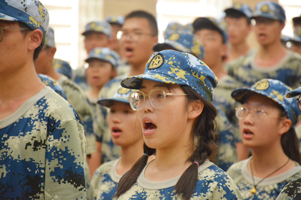 军歌教唱环节贯穿始终,队列训练间歇、开饭之前、休息期间都伴随着悠扬的歌声。学员们除了要学好学校统一安排的《强军战歌》,还要学唱专属于一营的《文明礼貌歌》。两首歌均展示了军人的风采,在反复练唱的过程中,“国要强,我们就要担当”,“站如松坐如钟军姿多严整,礼节周到又热情,人民战士形象美,精神文明当先锋”深入人心,使同学们的思想和情感都得到了升华。
