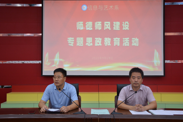 为深入落实《中共中央国务院关于全面深化新时代教师队伍建设改革的意见》,进一步推进师德师风建设工作,强化教师责任担当。9月28日下午3:50,信息系在H楼报告厅组织召开了师德师风建设专题思政教育活动,副校长周卫星出席了本次会议,会议由信息系主任徐亮主持。