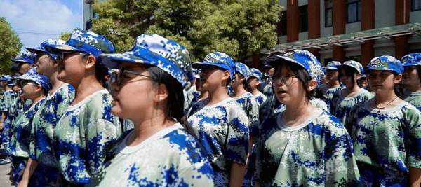 唱响军歌,无疑是学子们最爱的环节。这会让他们满身的疲惫一扫而空。从《强军战歌》到《咱当兵的人》。教官们教得认真,学子们学得起劲。“听吧新征程号角吹响,强军目标召唤在前方……”,“咱当兵的人 有啥不一样,只因为我们都穿着朴实的军装……”,一首首嘹亮的军歌响彻学校上空,回荡在校园,学子们用歌声驱散了军训的疲惫,唱响了青春的旋律。他们以饱满的精神,朝气蓬勃地展示着自己的风采,将豪壮、英勇的情怀展现得淋漓尽致!