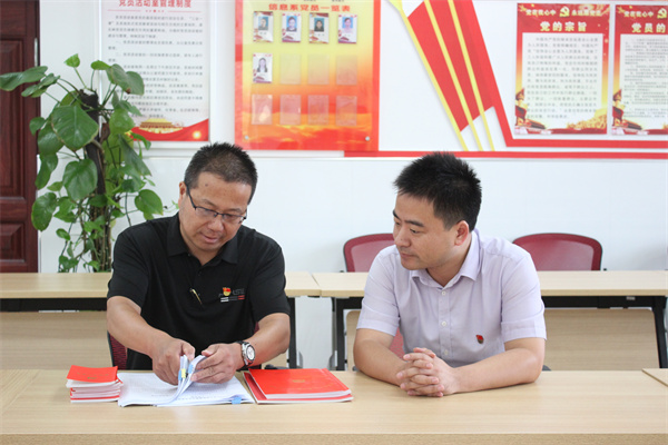 基层党组织是贯彻落实党中央决策部署的“最后一公里”,为进一步规范基层党建工作、巩固基层党组织的战斗堡垒作用, 10月11日,校党委委员、党委办公室主任洪龚明走进各支部,结合下半年学校党建工作和党史学习教育安排,对各支部第三季度党建工作进行现场检查和交流。 党委办按照《规范化支部建设标准》认真检查支部工作、阵地建设情况和党史学习教育情况,重点检查了党支部记录本、党小组记录本、谈心谈话过程性资料和党史学习教育台账。各支部准备充分,严肃认真对待本次工作检查,并能做到遇到问题即知即改、立行立改。党史学习教育开展以来,各支部将“党建常规”和“党史学习教育”紧密结合,敢担当、勇作为,强力推进“謇行?践行”主题实践活动,做到“留心”与“留痕”并行。 洪龚明在检查过程中强调,各支部下半年党建工作要继续保持高度敬畏,一是抓好党史学习教育“一丝不苟”,二是抓实基础党建“一定不移”,不断增强党建“红色引擎”源动力。