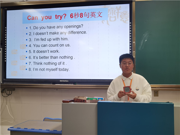 英语趣味社团为学生拓展课外知识,开展口语活动提供契机。10月13 日18:00~18:45 E229教室传来阵阵笑声。学生们正在进行一次快速说英语的比赛。挑战6秒8句英语。通过本次活动,学生们掌握了8句常用口语,感受到了学习英语的乐趣,同时也知道了英语不是说得越快越好,要注意语音语调、重读和弱读。说得过快,会影响正常交流。快速说英语能够锻炼口部肌肉,模仿正确的发音方式能帮你牢记单词,培养语感。(供稿 电子信息综合系 严丽敏)
