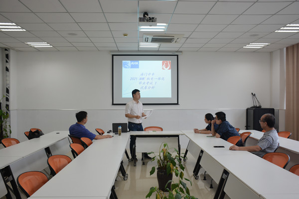 南京凤凰职教中德合作项目部教学主管王伟与李建英、黄峰、沈诚等老师就项目化教学以及AHK机电一体化毕业考试1等内容沟通交流。