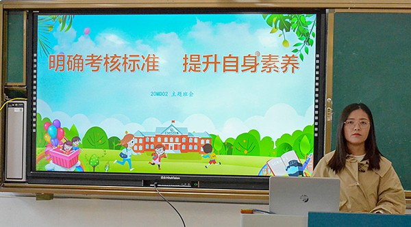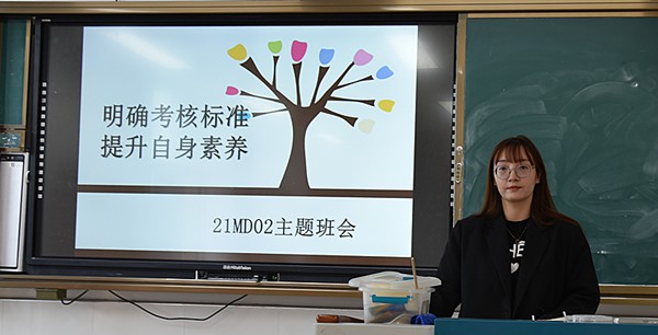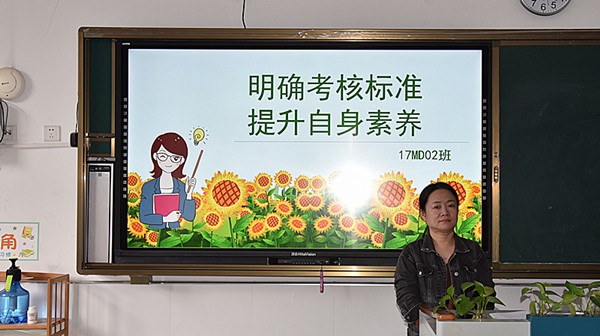 班会中,班主任老师从常规考核方面入手,深入解读学校的各项考核标准,带领学生们再次明确了《一日常规考核内容及标准》、《班级星级管理考核办法》、《宿舍考核标准》等规章制度,分析本班学生的扣分情况,让学生们加强自我管理和约束,把各项考核标准熟记于心,落实到行动上,成为一名合格的中职生。