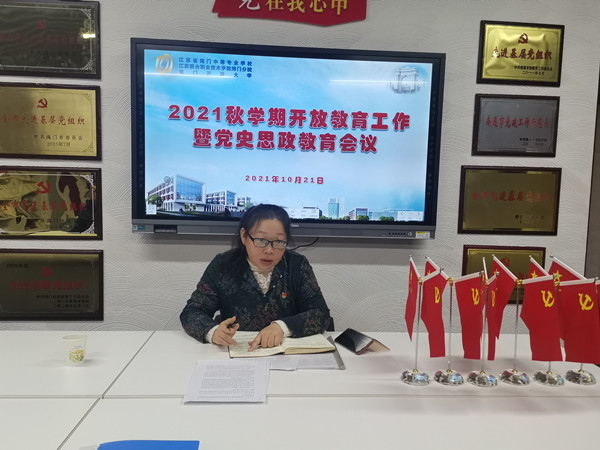 10月21日中午12点10分,继续教育部在A楼11楼党建文化活动室(砥砺厅)召开了2021秋学期开放教育工作暨党史思政教育会议,会议由杨云主任主持,全体开放教育工作人员、班主任和任课老师参加了本次会议。