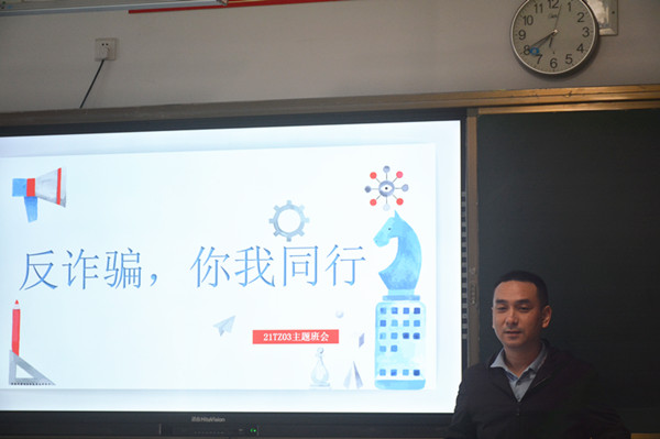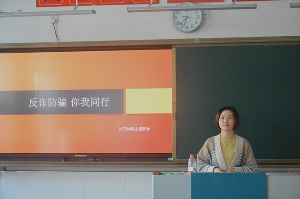 在现如今的社会,诈骗案件越来越多,犯罪分子利用一些学生的虚荣心、贪便宜、单纯等心理特点实施各种诈骗手段,使部分学生损失巨大的财产。为提高学生防诈骗安全意识,增强学生的自我保护能力,10月25日上午第一课,交建系组织各班开展“反诈防骗,你我同行”主题班会活动。