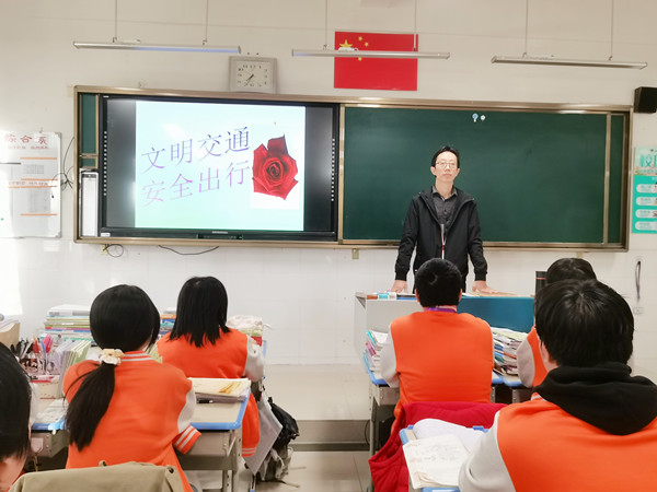 在班主任的精心组织下,各班以多样的形式和丰富的内容呈现主题。让人怵目惊心的道路安全事故视频和交通事故数据不禁引发同学们的深思,师生共同讨论分析事故产生的原因,发现大多都是人为因素导致,都是可以避免的,如闯红灯、超速、超载、不礼让行人等。进而老师和同学们一起学习了日常交通法规,辨识交通信号标志,并强调行走、乘车、骑车过程中的注意事项,要求大家做到交通安全“五不准”,切忌侥幸心理。同学们还即兴编写了一系列简明易记的交通安全警示口号。此外,老师也和大家分享了遇到车祸等交通事故时的应急处理办法。