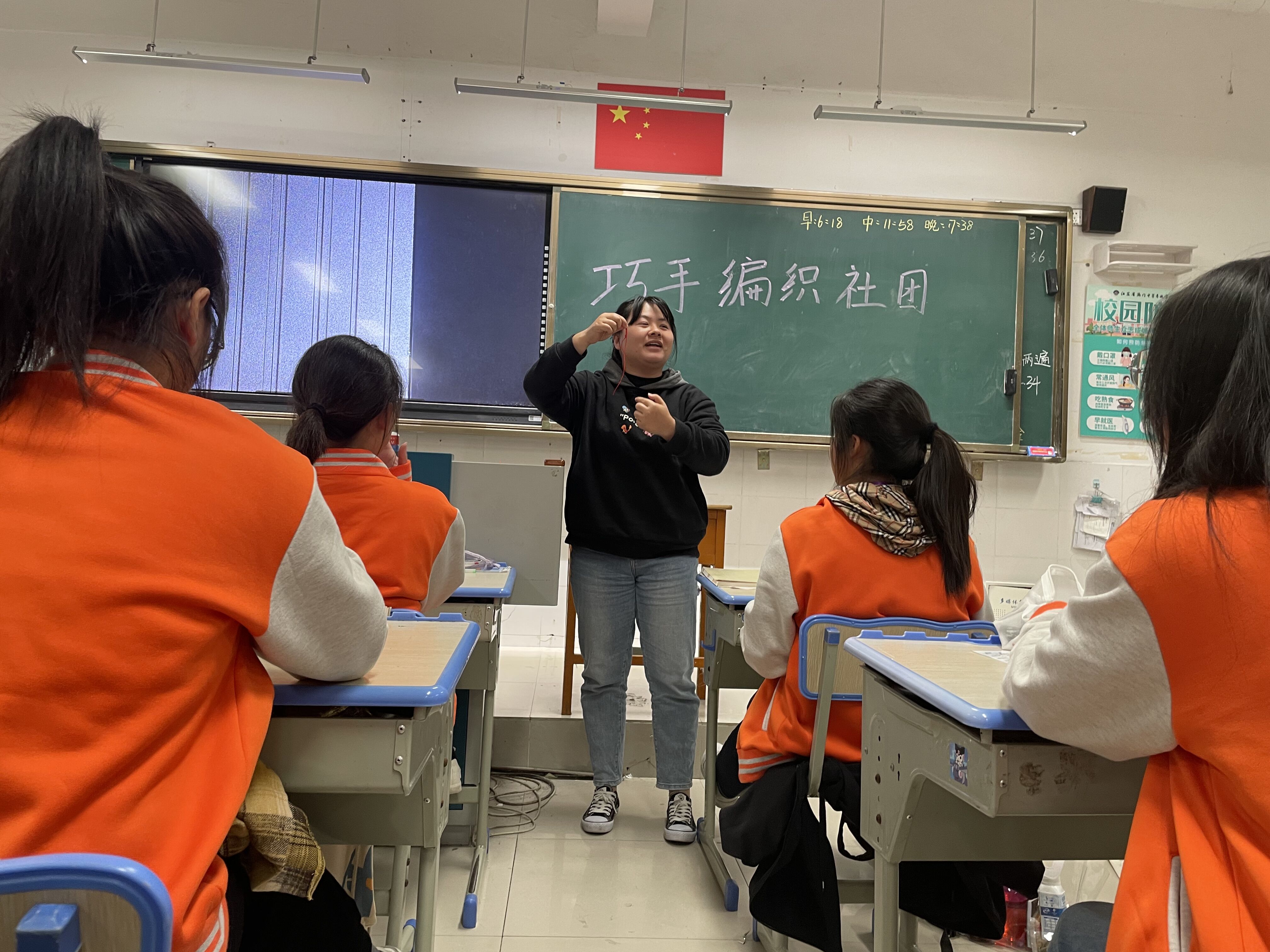 社团指导老师龚莉利用学生的晚自习前半小时,在财贸系21YZ05班通过一系列手工编织活动,培养学生的耐心、细心的良好品质,提高学生的观察力、创造力,从而使他们更加热爱生活,在生活中发现美、创造美,用自己的双手编织美好的未来。