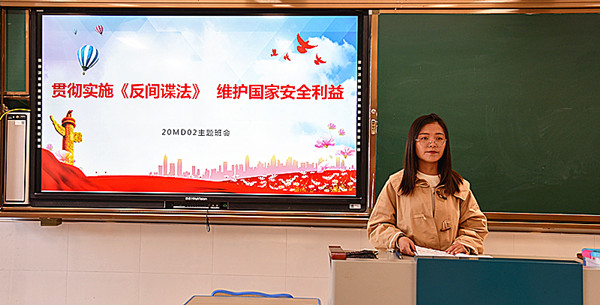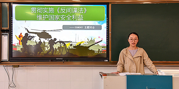 班会活动课上,班主任老师组织学生们认真学习了《中华人民共和国反间谍法》、介绍了反间谍法的由来以及重大作用,还一起观看了反间谍的相关教育视频。要求所有学生认真贯彻实施《反间谍法》,明确在反间谍工作中的责任和义务;学会辨别生活中常见的间谍行为,坚决维护国家安全利益。