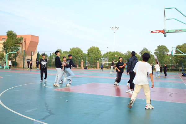 篮球场上,翟甘老师正带领快乐篮球社的同学们进行上篮训练,一位同学刚进行完一次三步上篮,另一位同学又快速杀到篮下,没有任何停滞,动作连贯又潇洒。一会儿,同学们又开展了分组对抗训练,防守、过人、上篮、抢篮板,球场上响彻同学们的呼喊声,他们尽情挥洒汗水,释放青春的活力,将青春的激情尽情绽放。
