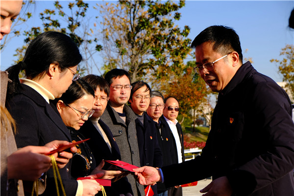 11月23日下午,海门中专党委举行党建文化主题公园开园仪式暨“传承红色基因,砥砺初心使命”11月主题党日活动。全体在职党员、发展对象、入党积极分子参加了本次活动。活动由党委委员、党委办公室主任洪龚明主持。校长徐忠、党委书记宋健等学校党委委员以普通党员身份参加了本次组织生活。 主题党日活动在雄壮的国歌声中拉开帷幕。 开园致辞 党课铿锵 学校党委书记宋健进行党建文化主题公园开园致辞暨十九届六中全会精神宣讲。宋健指出,党建文化主题公园是学校党建宣传的重要阵地,也是实现新时代海门中专坚定贯彻新发展理念、推动学校高质量发展的精神加油站。宋健结合十九届六中全会精神宣讲指出,全体党员要树立正确的党史观,通过学校党建文化主题公园这一“红色课堂”深刻感悟并传承伟大建党精神,坚定不移跟党走。 开园仪式 简洁隆重 打造学校党建文化主题公园,目的就是进一步提升党史学习教育的深度、广度和力度。校长徐忠宣布“海门中专党建文化主题公园开园”,现场锣鼓喧天、鞭炮齐鸣,全体党员神情振奋、神采飞扬。仪式是成长的足迹,开园仪式在提醒每位党员干部、教职员工,珍惜学校来之不易的发展机遇,以更加昂扬的姿态推动学校高质量发展。 朗诵书法 相得益彰 学百年党史、悟思想伟力,最绕不开的应该就是长征的历史。财贸系党支部带来诗朗诵《长征》,经贸系党支部党员樊炜进行了“为党育人、为国育才”书法展示。朗诵磅礴宏伟,书法苍劲有力,二者结合,相得益彰,这是听觉和视觉的双重洗礼。最后,樊炜老师分享了他对于书法作品的构思,他说,“为党育人、为国育才”是每个教育人的初心使命,每个党员就是一名“尖兵”,要致力于培养一批又一批勇于承担社会责任的时代新人。 赶考之路 初心如磐 全体党员一起观看学习微视频《赶考路》。过去一百年,中国共产党向人民、向历史交出了一份优异答卷,如今,中国共产党人团结带领中国人民又踏上了实现第二个百年奋斗目标新的赶考之路。每一位党员都是新时代赶考人,初心不改,使命在肩,路漫漫其修远,吾辈必将上下而求索! 诵读党章 牢记使命 《党章》是中国共产党的根本法规,学习党章党规是每一位党员的必修课。全体党员虔诚翻开党章,齐声诵读“全心全意为人民服务”的党章要求。每位党员在诵读中对标对表,在洗礼中砥砺前行,不断交出让人民满意的新时代职教答卷。 小小“微心愿” 浓浓帮扶情 活动前期,学校党委遴选收集部分需要帮扶的学生和具体心愿,各支部书记现场认领微心愿,后期将与微心愿学生所在支部对接,将暖心活动进行到底。这是学校“我为群众办实事”活动的持续发力,也是切实将党史学习教育成果转化为工作成效、聚焦学生所需,努力提升学生幸福感的帮扶之举。 过政治生日 忆入党初心 11月是宋健、施晓东、张舒皓、江勇、顾辉、葛菊梅、张成、殷志祥、杨滨榕、顾炜、陈海滨、张丽丽、苏丹、宋新、曹怡、许冬芝、孔佳宁、朱玲华、施红华、黄磊鑫、彭佩红、陈新、陈德均、陆强、陆裕冲等25位同志政治生日月,校长徐忠为他们赠上生日贺卡和学习资料,党委副书记、副校长周桂岐带领政治生日同志及全体党员重温誓词。最后,施红华作为政治生日代表上台发言。施红华说,作为一名新党员,从政治生命原点出发,一定珍惜政治荣誉,牢记育人初心,走好政治生涯每一步。 歌舞飞扬 红旗飘飘 “如果信念有颜色,那一定是中国红!”信息系党支部为全体党员带来歌舞《红旗飘飘》。一面面鲜艳的五星红旗飘扬在祖国的大江南北。只要有五星红旗在的地方,就有强大的祖国在庇护我们。师生们唱出了峥嵘的家国岁月,舞出了矢志不渝的革命精神。 红色之路 传承之光 活动最后,全体党员跟随义务讲解员杨滨榕同志接受现场教学。漫步公园,有辉煌史诗党史墙,有中国精神展示墙、有红色灯柱塔、有职教使命墙、有红色大舞台,一条红色文化之路贯穿其中,红色与绿色交融,自然与人文交互。职教人的初心使命与党史学习教育有机结合,全体师生必将从百年党史中汲取精神力量。海门中专定将为党和国家培养出数量更多、质量更优的中国特色社会主义事业的接班人和高技能人才。