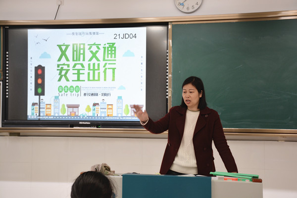 班会课上,各班班主任利用通俗易懂的语言,图文并茂的PPT课件,深入浅出地给大家讲解交通安全方面的知识,还用生动具体、活生生的交通事例警示、教育学生要遵守交通规则,确保出行安全,给每一位学生都留下了深刻印象,使学生受益匪浅,达到良好的教育效果。同学们也各抒己见,发表精彩感想,争先表达自己的观点,并向大家分享发生在自己周围与交通事故有关的小知识。随后,全班同学满腔激情,集体承诺“严格遵守交通规则,建设安全、畅通、礼貌的交通环境!从我做起,从身边做起,做一名维护交通的文明人!”伴随着欢笑与思考,活动也逐渐走向尾声。