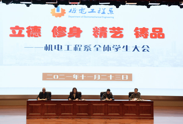 11月23日下午13:20,机电系在科教大会堂组织召开全体学生会议,以“立德 修身 精艺 铸品”为主题,统一思想认识,号召全体学生立崇高品德,修精艺之业,做优秀之人。机电系副主任李海燕主持会议,会议共五项议程。