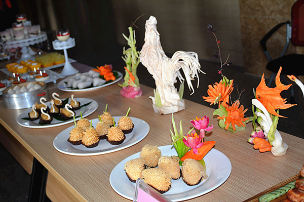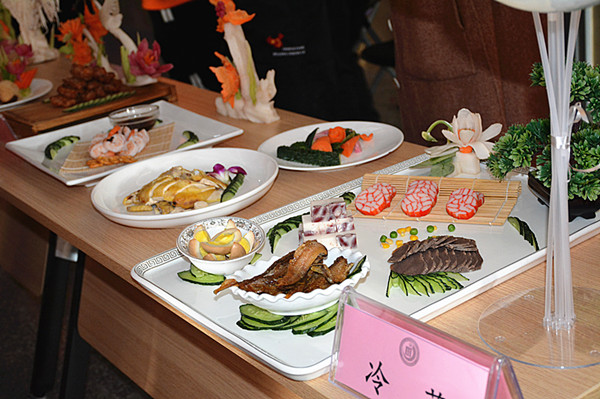 烹饪类项目主要选择了花式冷拼、食品雕刻、中式点心、热菜、冷菜、甜品等,栩栩如生的菜品,鲜香欲滴的滋味,别具匠心的组合,无不教人为美食停留和倾倒。参赛师生们各展才艺,倾其所有,展露匠心,尽显专业风采。