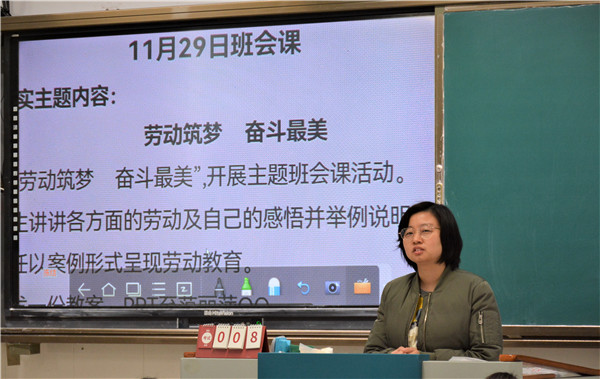 活动过程中,有的班主任通过精心制作的课件向同学们解读了热爱劳动的精神实质,介绍了劳动模范的感人事迹;有的班主任组织学生表演节目,让学生体会劳动创造美好,明白劳动不分贵贱,尊重劳动人民,自身也要热爱劳动,这样才会“未来可期”;有的班主任深刻阐释了自力更生、艰苦创业是我们中华民族优良传统的道理,激励学生从自我做起,爱上劳动。同学们感触颇深,深感以前对劳动产生了极大的误解,以后的生活中要好好学习,练就过硬专业基础,感恩社会,回报社会,成就自我价值。