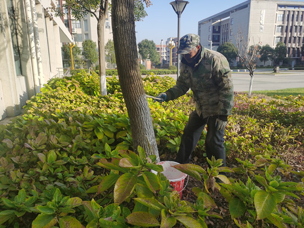 随着气温逐渐下降,绿植开始进入冬季生长休眠期,为确保校园绿植安全过冬,本着早准备,早部署,早行动的原则,学校后勤保障部组织绿化工人开展树木全面涂白工作。 每年树木涂白是绿化管理过程中必不可少的一项工作,对树木抗寒越冬起到保护作用。本次树木涂白工作持续一周多,白色的波尔多液具有反光作用,可以减少吸热,树木不会因昼夜的变化而受到太大的影响。它不仅可以确保树体安全过冬,而且还有防病虫害的效果。 为了达到良好的效果,绿化工人严格按照比例配置,精细操作,尽量保持树穴及地面的干净整洁,达到涂白高度一致,颜色均匀,为学校增添了一抹亮色。