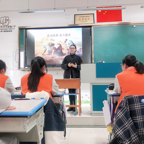 劳动教育是中华民族精神教育的一项重要内容,正如习近平总书记在2020年11月24日全国劳动模范和先进工作者表彰大会上所说的那样,“劳动最光荣、劳动最崇高、劳动最伟大、劳动最美丽”“光荣属于劳动者,幸福属于劳动者”,在我们身边也不乏靠辛勤劳动实现自我价值的典型。在班主任的组织引导下,大家围绕主题,通过案例分析、赏析劳模视频、头脑风暴等形式展开深入探讨,从劳动是什么、劳动者为何美丽、如何成为美丽的劳动者这几个方面逐层把握,从而明白劳动的真谛。课上班主任还带领大家学习了《习近平:在全国劳动模范和先进工作者表彰大会上的重要讲话》、《“平语”近人——习近平的“劳动观”》、《中共中央 国务院关于全面加强新时代大中小学劳动教育的意见》、《陈宝生:全面贯彻党的教育方针 大力加强新时代劳动教育》、《人民日报社论:大力弘扬劳模精神》等有关于劳动教育和劳模精神的重要理论和时讯文章。