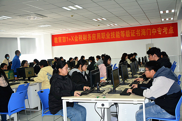 11月27日上午10:00,经贸系组织了18级会计专业学生在H楼机房参加了2021年教育部1+X金税财务应用职业技能等级证书考试。经贸系严格按照上级教育部门和学校布置的时间节点、工作环节,圆满完成了各项准备和考务工作。