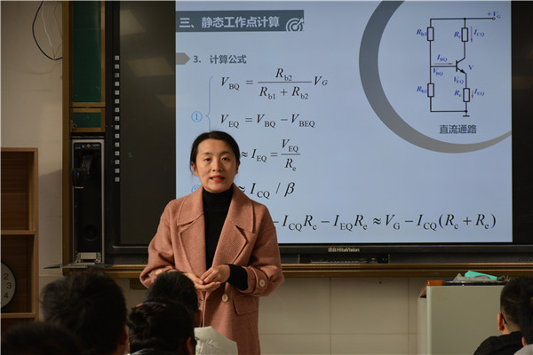 11月30日上午第二课,电信系刘文老师在20EZ02班开设了一堂题为《分压式稳定工作点偏置放大电路》的海门区级公开课,电信系施向华副主任以及各系部多名教师参与了本次听课、评课活动。