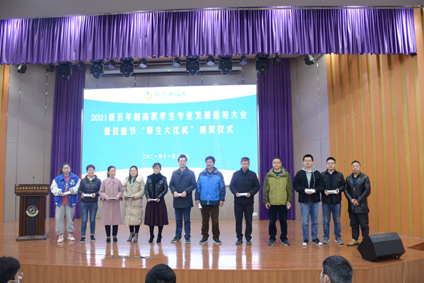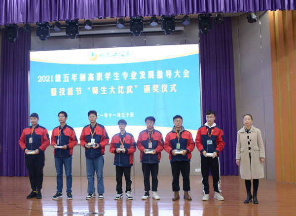 11月30日上午9:20,机电系在文苑报告厅举行2021级五年制高职学生专业发展指导大会暨技能节“师生大比武”颁奖仪式,21级高职全体学生参加会议。机电系科长陈宇洋主持会议,会议共两项议程。