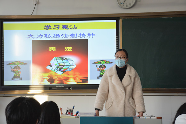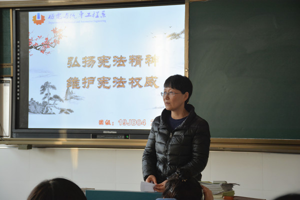 此次班会,旨在引导同学们用宪法规范自己的行为,深入学习、宣传宪法,全面深刻理解宪法的基本原则和精神,增强宪法意识、公民意识、爱国意识和民主法治意识,大力弘扬法治精神,真正做到宪法在我们的一言一行之中。(供稿:机电工程系 徐天天)