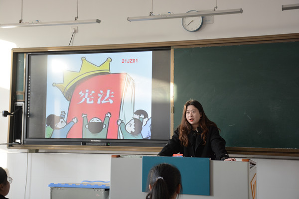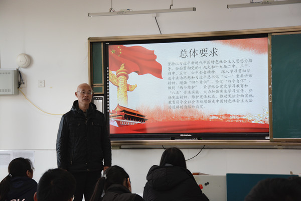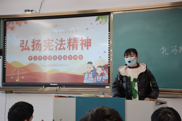 班会课上,班主任向同学们普及宪法创立时间、背景和中华人民共和国创立背景以及宪法对于我国政治生活、经济生活等起到的重要作用。通过同学朗读宪法部分内容、案例讲解、集体诵读、集体宣誓、班主任总结提升等环节让同学们对我国的国家性质、宪法内容等有了进一步了解。也使同学们体会到宪法的神圣,感到宪法与自己的生活息息相关。大家表示,要从内心里学习宪法,尊崇宪法的权威,在日常生活中弘扬宪法精神。弘扬宪法精神,维护宪法权威。