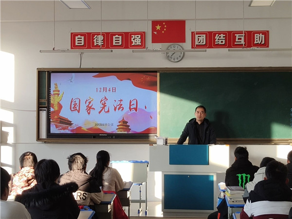 2021年12月4日是第八个“国家宪法日”,也是第四个“宪法宣传周”。在班会课中,班主任向同学们讲解了宪法的重要性以及学习宪法的意义,同时,班主任也就学生关心的《未成年人保护法》、《教师法》等进行了简单地解读,让学生明白法律就在我们身边,当我们的权益受到损害时,就要拿起法律武器保护自己。并通过观看普法视频加强学习。让同学们明白宪法是我国的根本大法,要坚定不移地执行,任何法律不能与宪法相抵触。