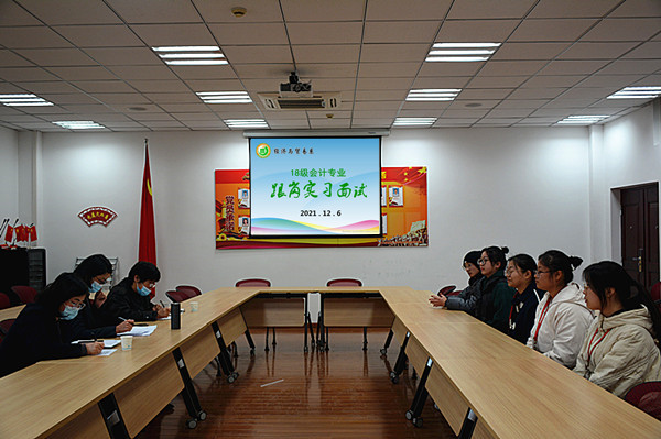12月6日下午2:30,在C2楼207会议室进行了经贸系18级会计专业学生农行招聘面试活动,中国农业银行海门支行综合部负责人叶敏、朱桂琴、袁竟男担任了本次面试的面试官。
