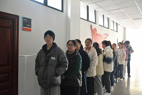 学生们高度重视本次面试活动,面试衣着以及注意事项都进行了精心的准备。大家信心满满的在面试室外排队,等待中国农业银行海门支行综合部领导的面试挑选。