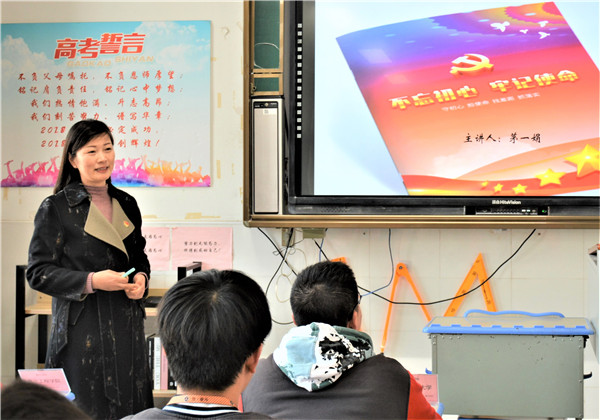 2021年12月10日星期五,茅一娟副校长在电信系19EZ03班给同学们上了一节生动的思政课,电信系江勇主任、顾辉副主任及教师代表共同聆听了本次讲课。茅校长以“不忘初心,牢记使命”为主题,把“大道理”讲活、学实、用好,用思政课凝聚大力量,加深同学们对中国共产党党史的学习。