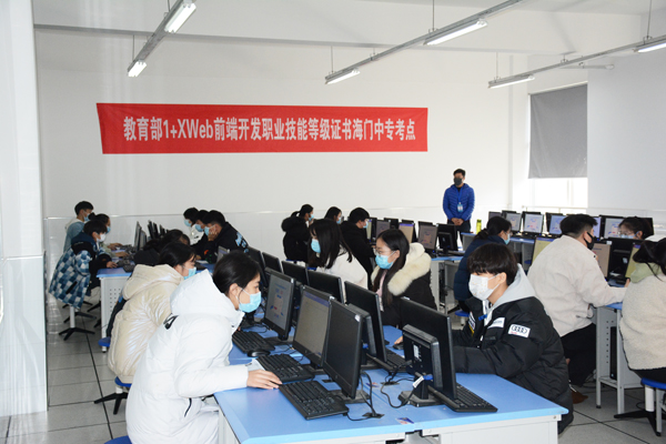 12月11日上午8:30,信息系组织18级大专计算机专业学生在G楼1号机房参加了2021年教育部1+X Web前端开发职业技能考试。