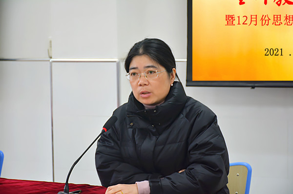 议程三,施主任组织全体教师进行了十二月份的思想政治学习,主题为:十九届六中全会精神,学习“过去的我们为什么能够成功、未来的我们如何继续成功。”她希望全体教师要学党史、悟思想,更好地从党的百年非凡历程中感悟信仰的力量。