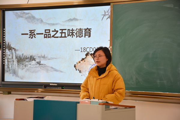 为让学生学会品味“酸、甜、苦、辣、咸”的人生五味,培养学生自信、善良、宽容、乐观、淡泊的品质,12月20日上午第一节课,信息系组织各班开展“一系一品之五味德育”主题班会活动。