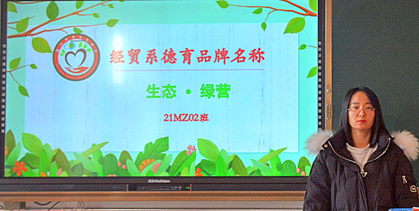 为了提高学生生态文明意识,树立生态文明观念,12月20日上午第一节课,经贸系组织各班开展了“大生教育”德育品牌“生态∙绿营”主题班会活动。
