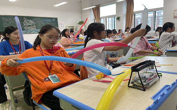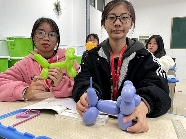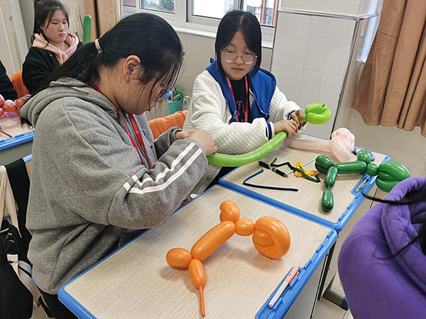 “创意气球”社团的课堂充满了欢声笑语,学生与陆丽华老师正一起探讨气球的“新形象”呢。智慧在手中惟妙惟肖地展现,每一寸每一节都在学生的手中演绎着。从俏皮可爱的小狗到美丽诱人的花朵再到静美绚丽的雪花,20MD02班本学期开展的制作气球活动,深受同学们喜爱,原来气球还可以这么玩儿。