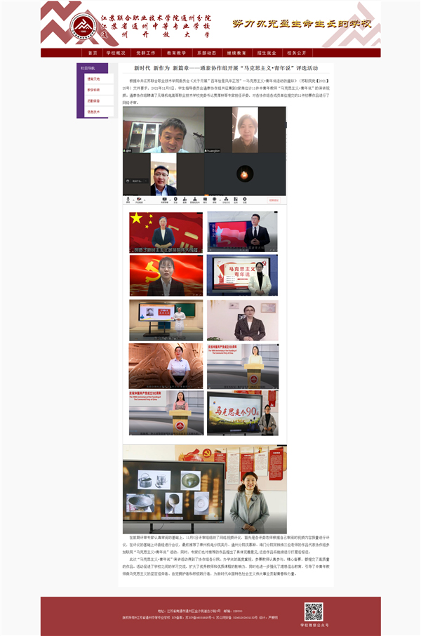 新时代 新作为 新篇章——通泰协作组开展“马克思主义•青年说”评选活动-江苏省通州中等专业学校