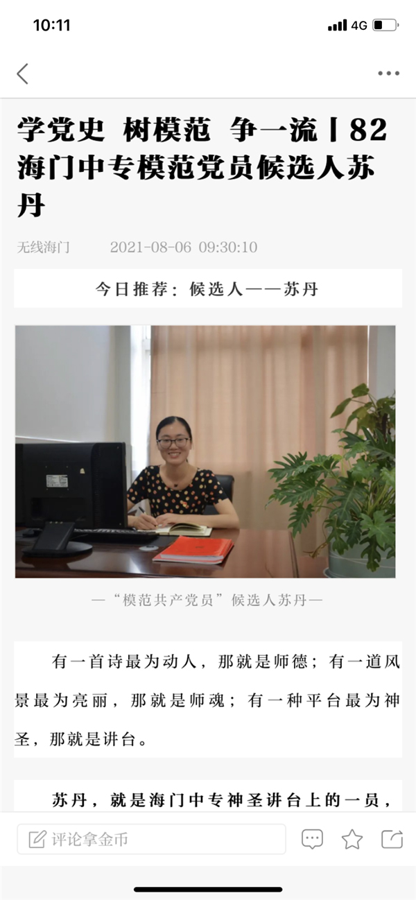 学党史树模范争一流·海门中专模范党员候选人苏丹