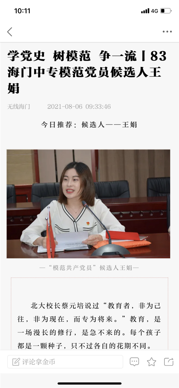 学党史树模范争一流·海门中专模范党员候选人王娟