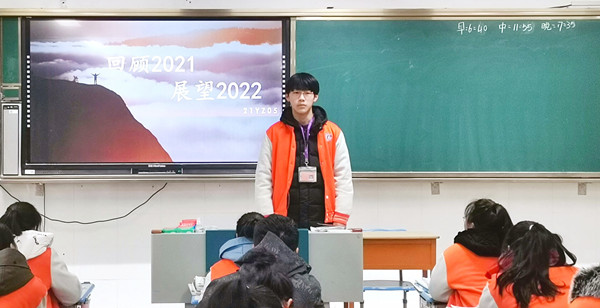 在这辞旧迎新的特殊时刻,各班主任让每位同学都成为主角,给同学们充分的分享时间,发挥学生主动性,让他们在交流中思考,在思考中行动。班主任设计了点赞环节,为自己点赞,为同学点赞。大家抓住彼此身上最闪光的一件事细细数来,重温2021。点赞内容涉及学习和生活的方方面面,有学习进步、有助人为乐、有军训瞬间、有宿舍荣光、有比赛获奖……充满了进取与温暖,也是对一年的别样总结。在追光环节,班主任引导同学们回忆一年中的遗憾,让大家在心愿卡上写下自己2022年的愿望。班会活动在各班主任总结中拉上帷幕。