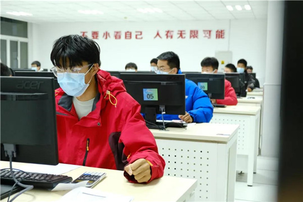 理论机考 关注细节 精心实施 这里有最规范的流程操作 比赛现场,流程规范、井然有序。 参赛选手沉着应赛、熟练操作;裁判打分、分数统计,公正公开。 比赛期间,学校还专门在文苑报告厅设置观摩区,对赛事进行全程直播。 江苏联合职业技术学院徐伟处长对赛事驻点巡视;赛点领导小组组长、南通市教育局副局长姜学勤,南通市教育局高等教育与职业教育处处长李维,海门区教体局副局长曹慧忠,海门区教体局职社科科长顾靖锋等在校长徐忠陪同下,进行现场巡查;均对海门中专赛点组织工作给予高度肯定。