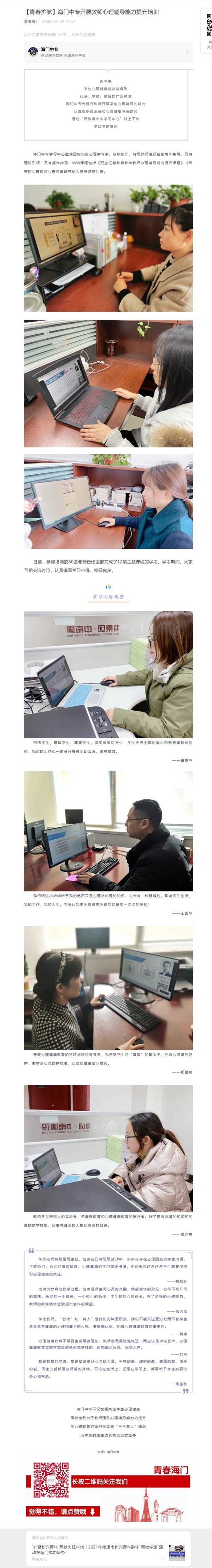 #青春海门#【青春护航】海门中专开展教师心理辅导能力提升培训
