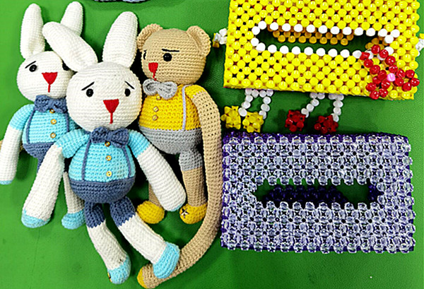 在指导老师许国娟的组织下,每次社团课同学们都在教室早早地做好准备,在许老师的细心指导下,大家用智慧的头脑和巧手制作完成一个个作品。在制作过程中,学生们热情高涨,很快就找到了做手工的要领,并且能拥有自己的新想法,有时候指导老师都成了同学们的学生,见识到了新知识新方法。下面,我们就一起来看看买回来的材料在同学们的手中完成的华丽转身吧!(经贸系 许国娟)