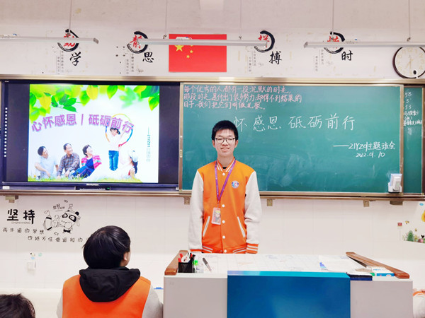 心怀感恩,砥砺前行。本次班会课从个人、家庭、社会、国家的层面,教育学生心怀感恩之情,肩负时代重任,立志报效国家、服务社会,实现自我价值。(图文/樊丽)