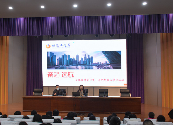 2022年1月10日上午9:50,机电系在文苑楼报告厅召开全体教师大会暨一月思想政治学习活动,机电系主任吴樱樱主持会议,王小辉副校长出席会议。