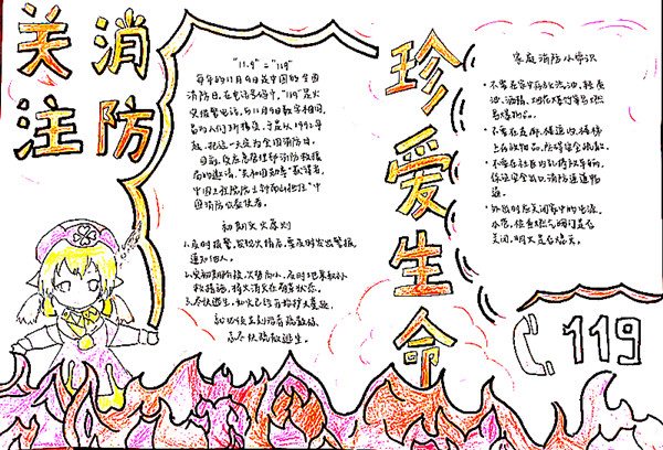 活动得到全系各班的积极响应,学生们在班主任老师的组织安排下,精心设计、各显神通,竭力创设富有文化特色、主题特色的黑板报、手抄报文化环境,所出的黑板报、手抄报内容丰富多彩、创意新颖,图文设计版面美观、整体性强,教育意义鲜明,普及了消防知识,增强了安全意识。通过系部初选,最终黑板报19MD01、19MD03两个班,手抄报21MD01俞心怡、20MD01朱婷逸、21MD02茅清舒、20MD02张文、20MZ03、21MZ03、21MZ01学生在评比中成绩优秀。