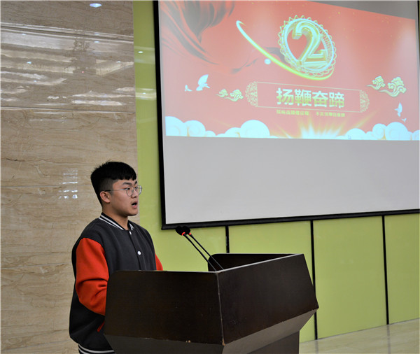 19EZ05班学生孙超凡作为学生代表发言,号召全体同学们要拥有狭路相逢勇者胜的气势,不怕困难、不惧辛苦,在未来的100天里做最好的自己,不留遗憾。