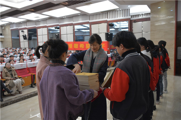 1月13日上午9点28分,电信系全体高三学生在精匠报告厅举行了2022届职教高考百日冲刺活动。副校长茅一娟与电信系主任、班主任、高三任课老师一起出席活动。