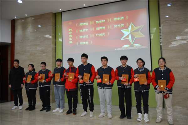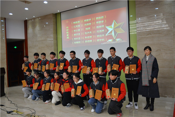 活动中还表彰了高三开学以来表现优异的同学,此次表彰共分为五个奖项:突飞猛进奖、巧夺天工奖、笃志好学奖、出类拔萃奖、不可限量奖。茅校长、江勇主任、顾辉主任、施向华主任分别为获奖同学颁发奖品。