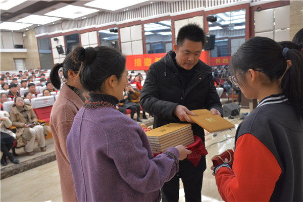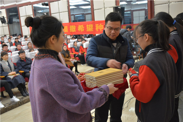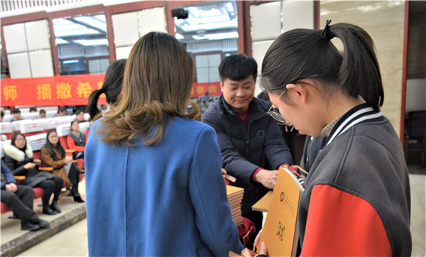 黄娟老师作为任课老师代表发言,黄老师鼓励同学们要珍惜当下,奋斗当下,越是到最后,越是对一个人耐力的考验,越是对一个人意志品质的考验。同时在未来的一百天里,我们老师还会一如既往,与同学们携手并进,风雨同舟。任课老师也为同学们准备了神秘的礼物。