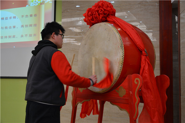 三鼓明志:百日誓师,为校明志,坚持到底,永不言弃。